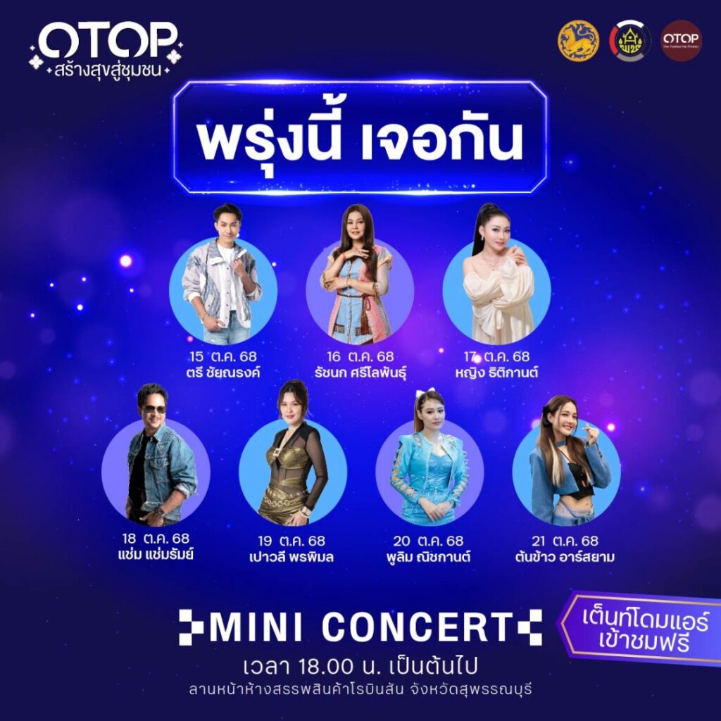 ระหว่างวันที่ 15-21 ตุลาคม 2568 ณ โรบินสันสุพรรณบุรี (เต็นท์โดมแอร์ เข้าชมฟรี) ผ้าไทย เครื่องประดับ อาหาร เครื่องดื่ม พร้อมครบ WORKSHOP ของดีทุกวัน มากันให้แน่นลานด้านหน้าโรบินสันสุพรรณบุรี
